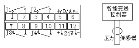 B)、三組繼電器報(bào)警控制輸出:J1、J2、J3常開端子分別接端子(1、2)、