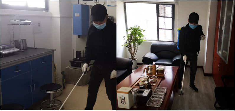 輕工工程公司孝感分場(chǎng)所試驗(yàn)室、辦公室、員工宿舍消毒,為復(fù)工復(fù)產(chǎn)做準(zhǔn)備