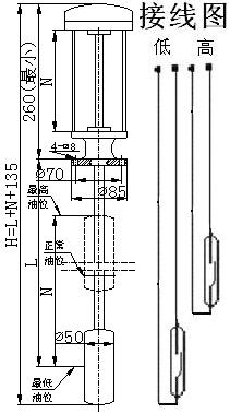 4)、本信號器出廠時預置的液位信號位置與實際不符時,可以改變相應的磁控開關的接線長度來調整。