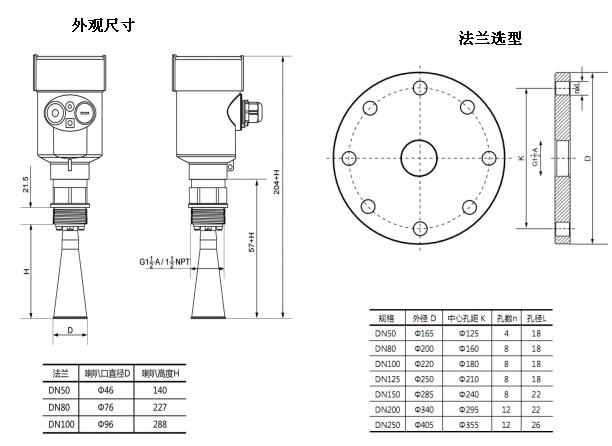 四、外觀尺寸及法蘭選型: